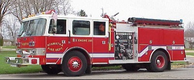 The 1989 Pierce Pumper was built in Appleton, Wisconsin. It carries 750 Gallons of water and has a 1500 GPM pump. It can carry up to 5 firefighters. It serves as the second engine on structure fires and also responds automatically into Cedar Rapids for structure fires near Hiawatha on the northeast side.