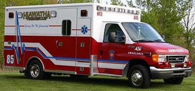 Hiawatha has three ambulances. All three were built by Lifeline Emergency Vehicles in Sumner, Iowa. They are equipped to provide advanced life support to sick and injured patients. They are capable of transporting several patients at the same time and have the ability to care for both adult and pediatric patients.